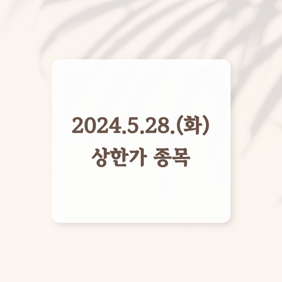 24년 5월 30일 상한가 종목 및 이유 정리_카티스/헝셩그룹/오가닉티코스메틱 (0) | 2024.05.31 |