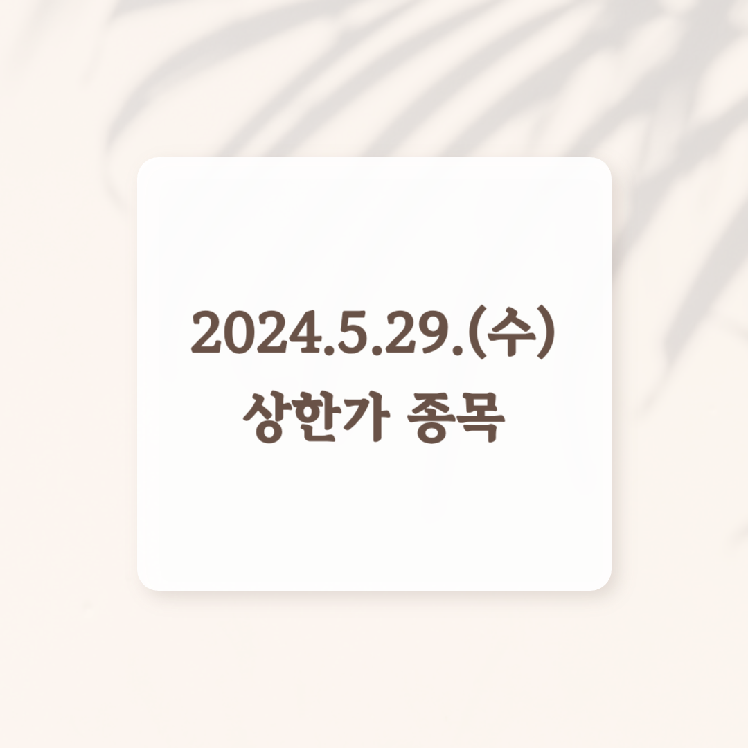 | 24년 5월 30일 상한가 종목 및 이유 정리_카티스/헝셩그룹/오가닉티코스메틱 (0) | 2024.05.31 |