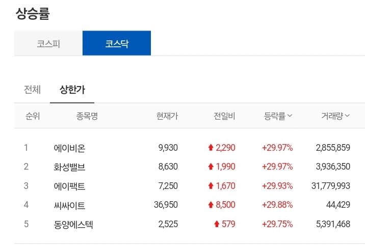 1. 상한가 종목