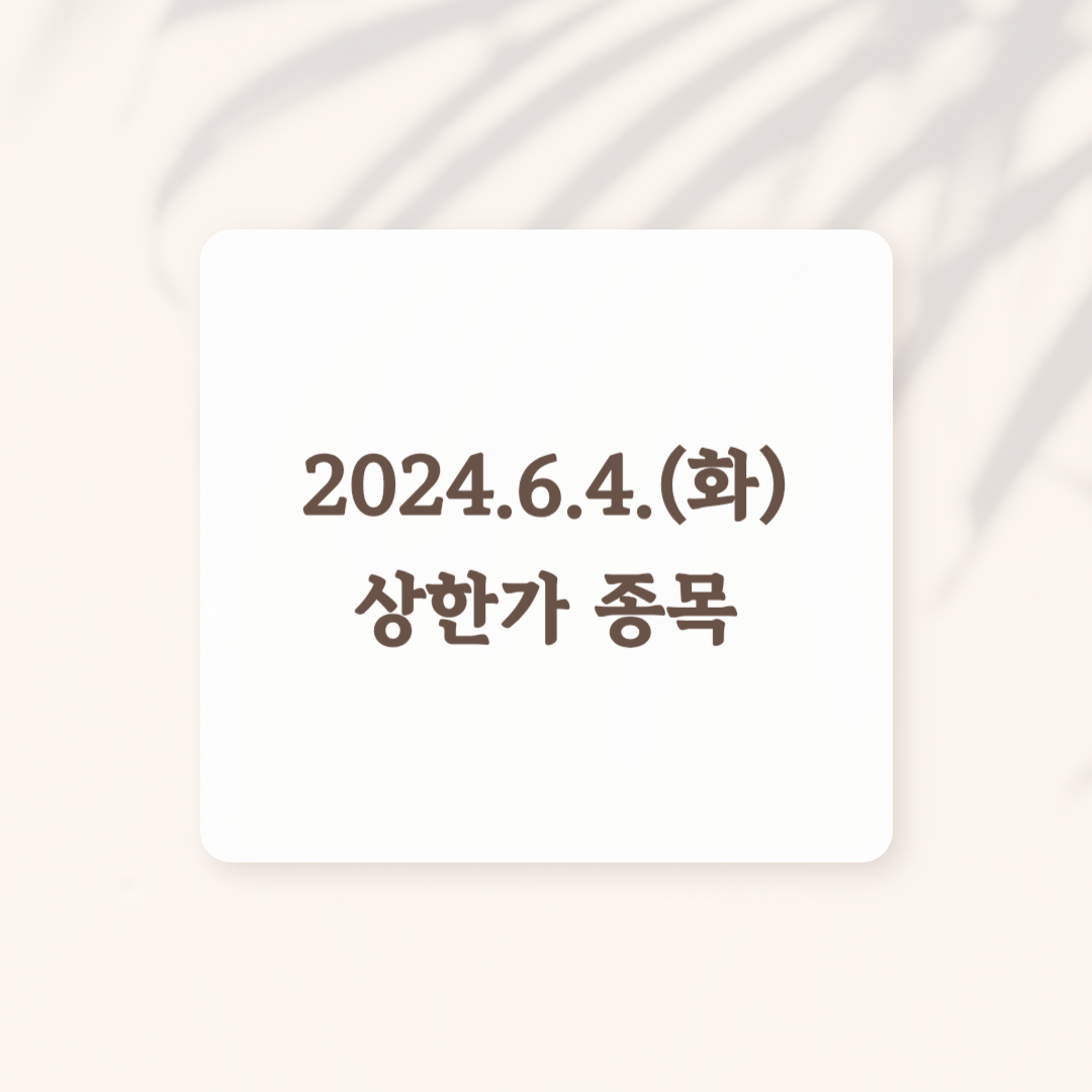 2024년 6월 4일 상한가 종목