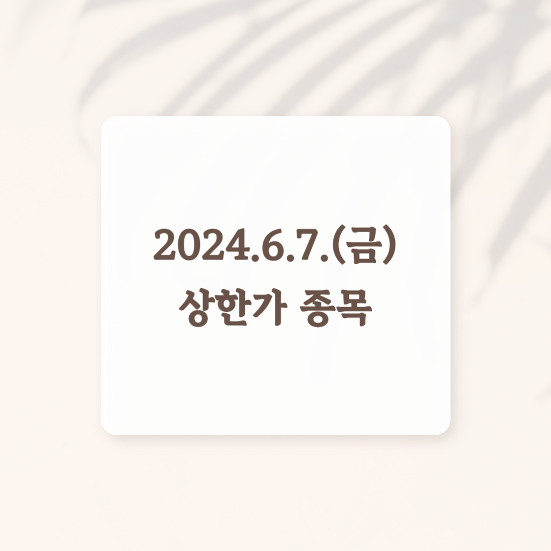 2024년 6월 7일 상한가 종목