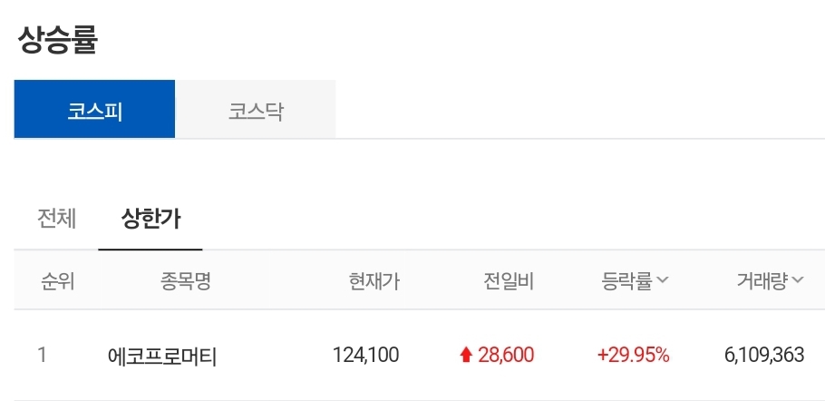 1) 코스피 - 에코프로머티 상한가